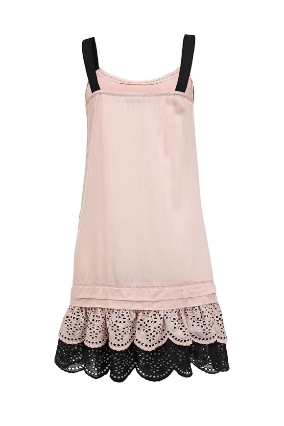 Сарафан Sinequanone розового оттенка выполнен из мягкой вискозы с добавлением хлопка. Детали: прямой крой, круглый вырез, широкие бретели, застежка на молнию сбоку, двухслойные оборки по низу.